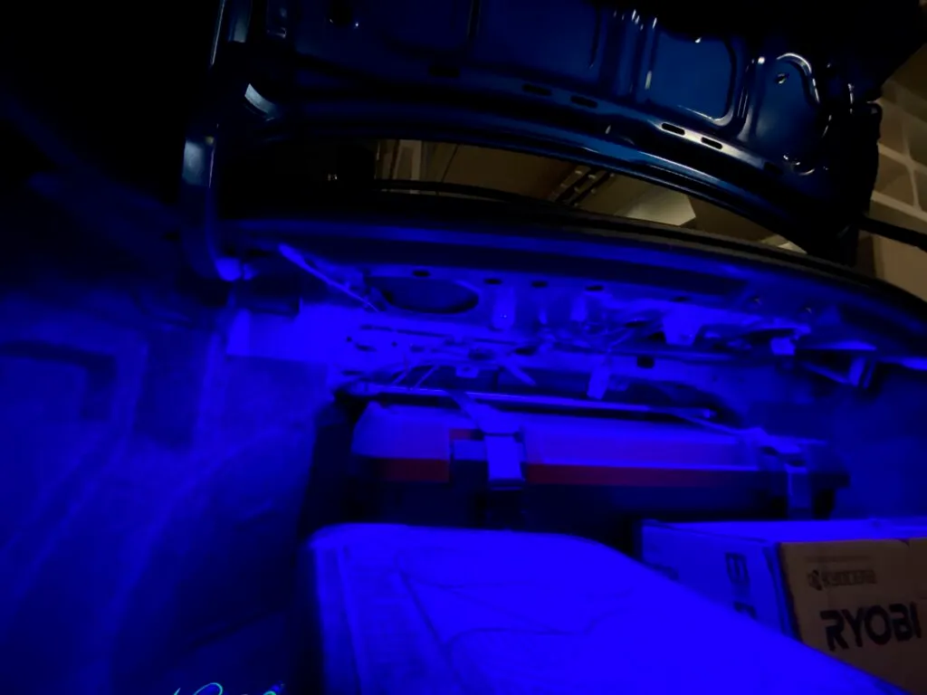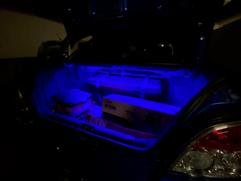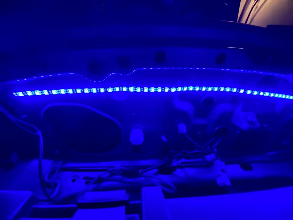なので、余っていたLEDテープライトをつけます。本当は白色がベストですが、青色が余っていたので視認性が悪いかもしれませんがつけてみました。そしたら、意外と青くても問題ないです。
